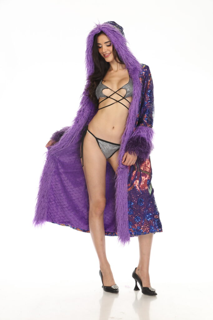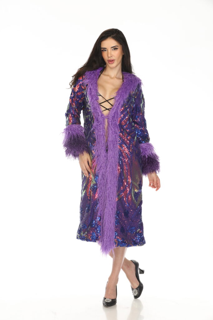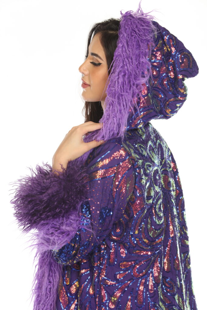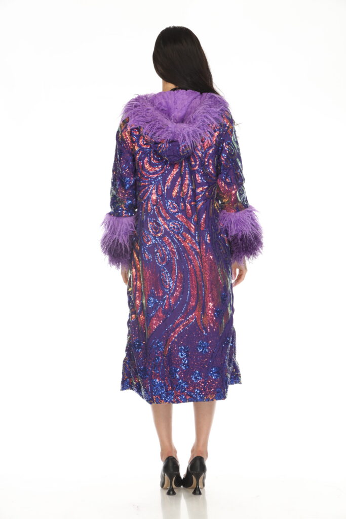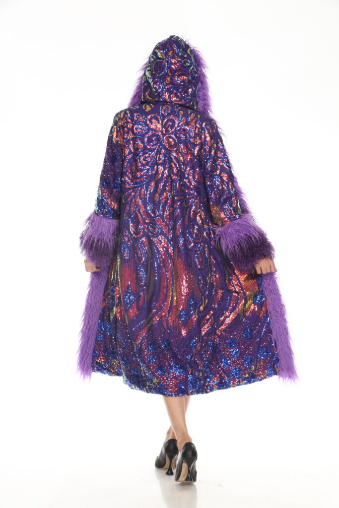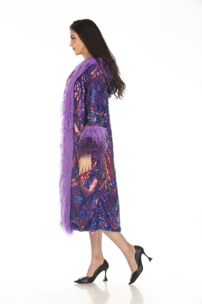 2573 – Sequin Faux Fur Coat – Purple Multi