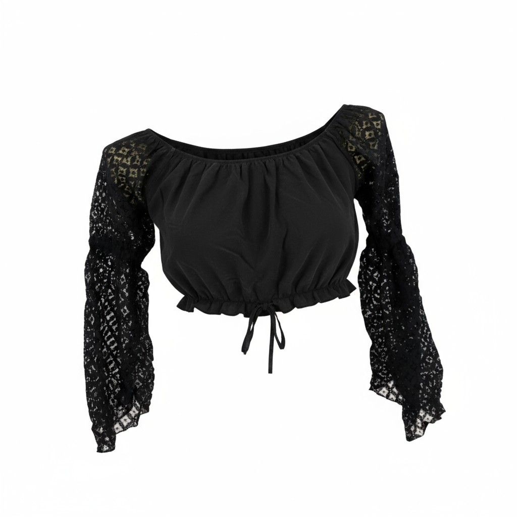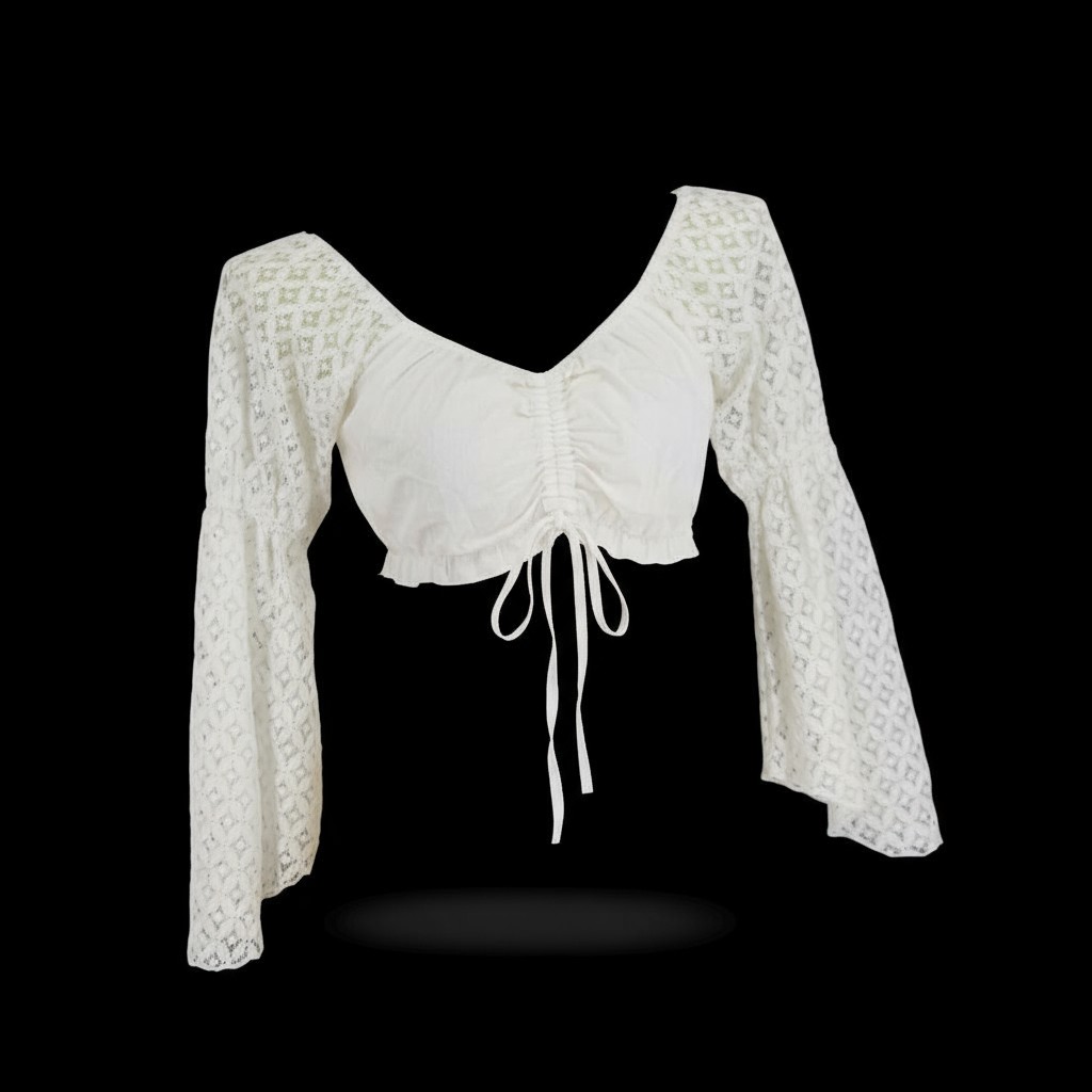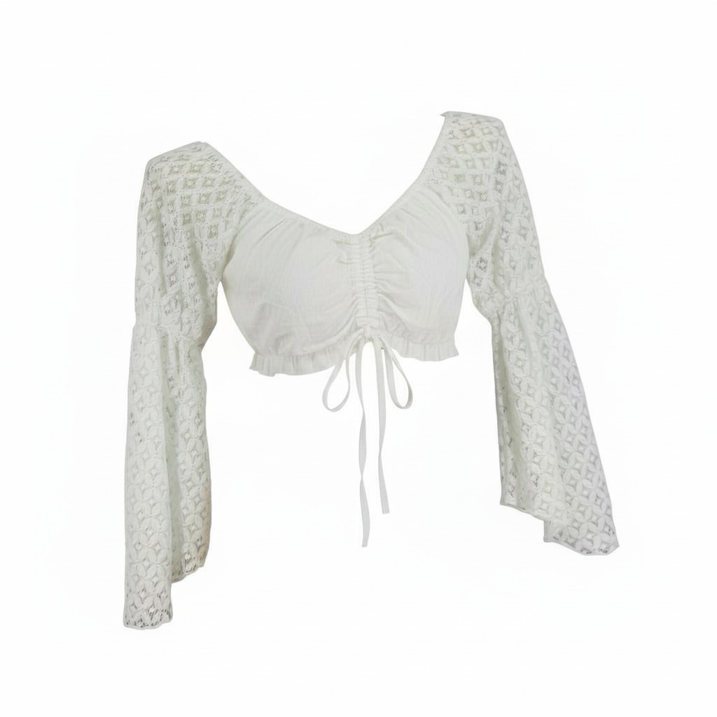 Cotton Choli top with crochet lace sleeves