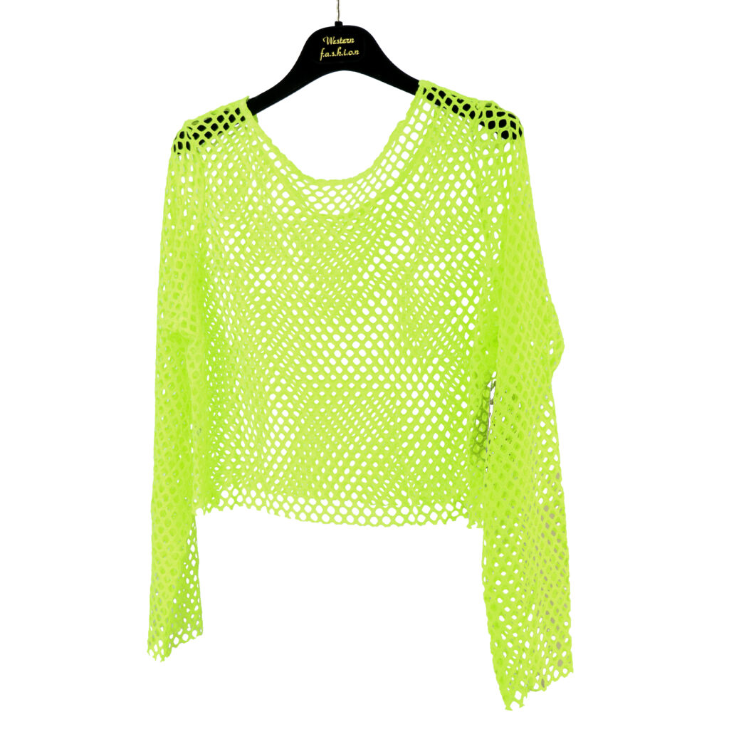8426 – Fishnet Mesh Long Sleeve Crop Top-neon green