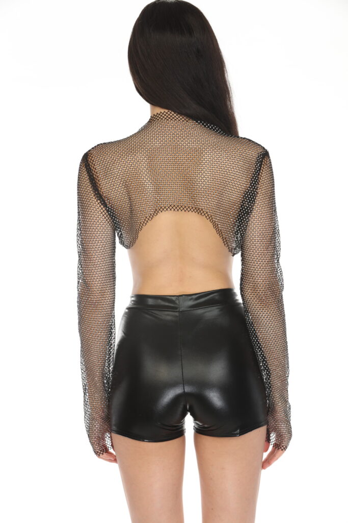 8504 – Rhinestone long sleeve mesh top-Fuchsia