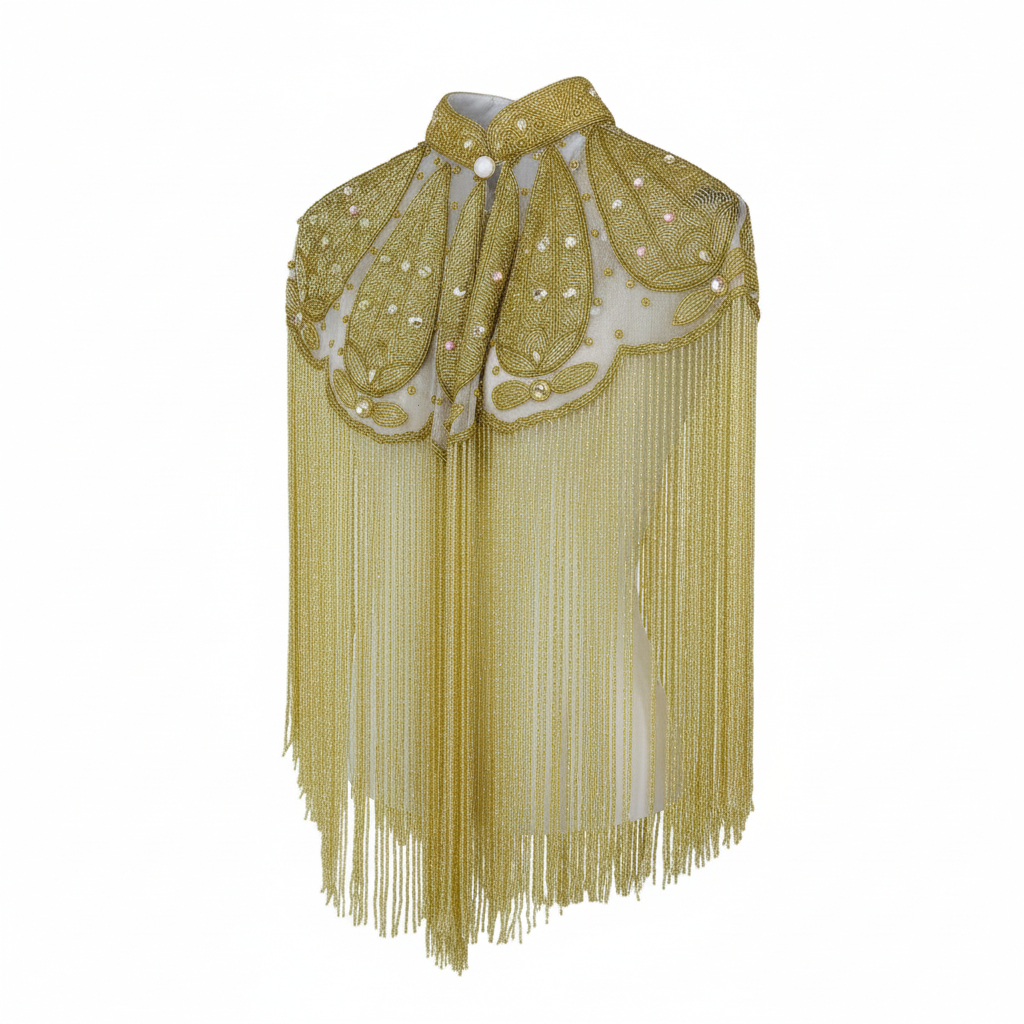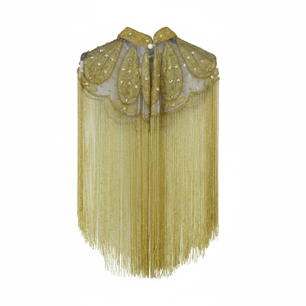 Beaded Cape – w/collar Gold w/gold fringes