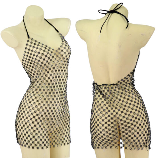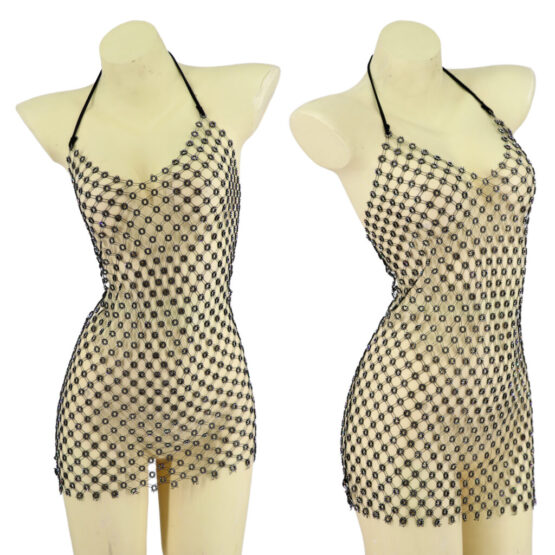 94091 – Black Mesh Mini Dress with Spaghetti Straps