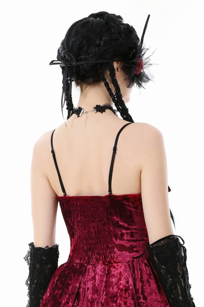 ACK153 – Gothic Red Gem Cross Lace Choker..