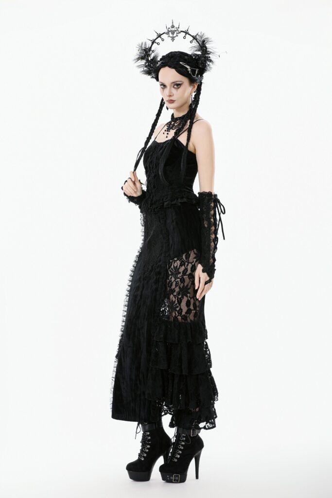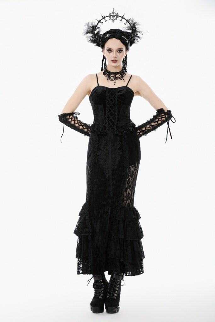 CW101 – Gothic black velvet lace corset-S