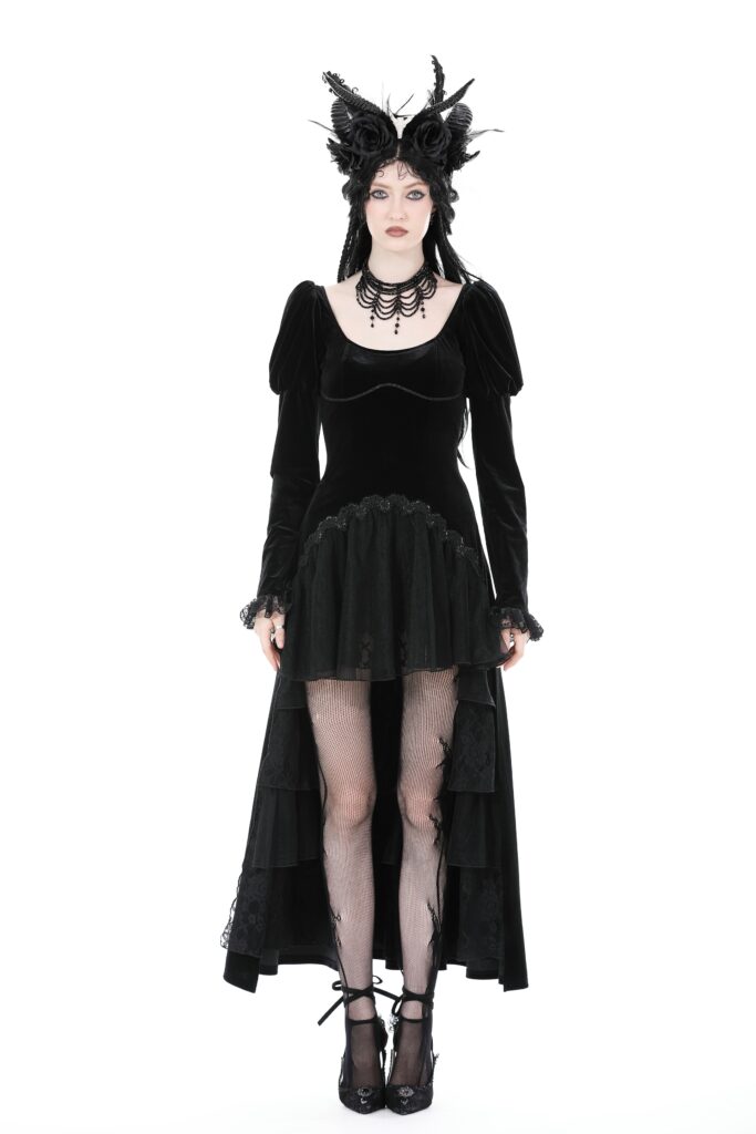 DW877 – Gothic velvet puff sleeve high low dress