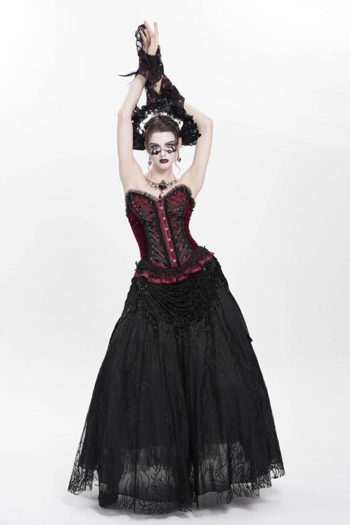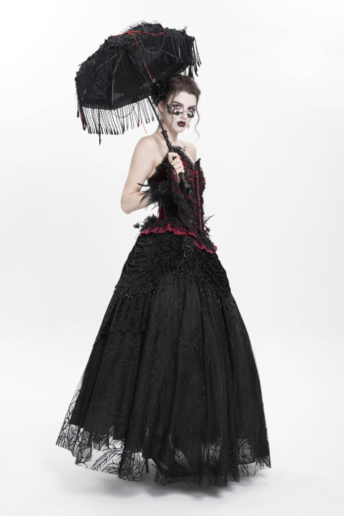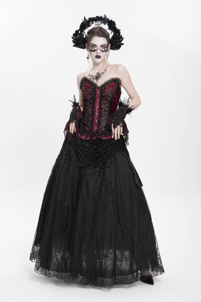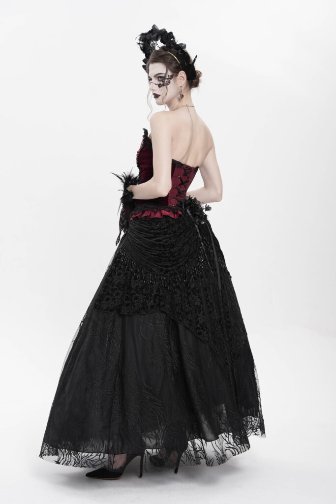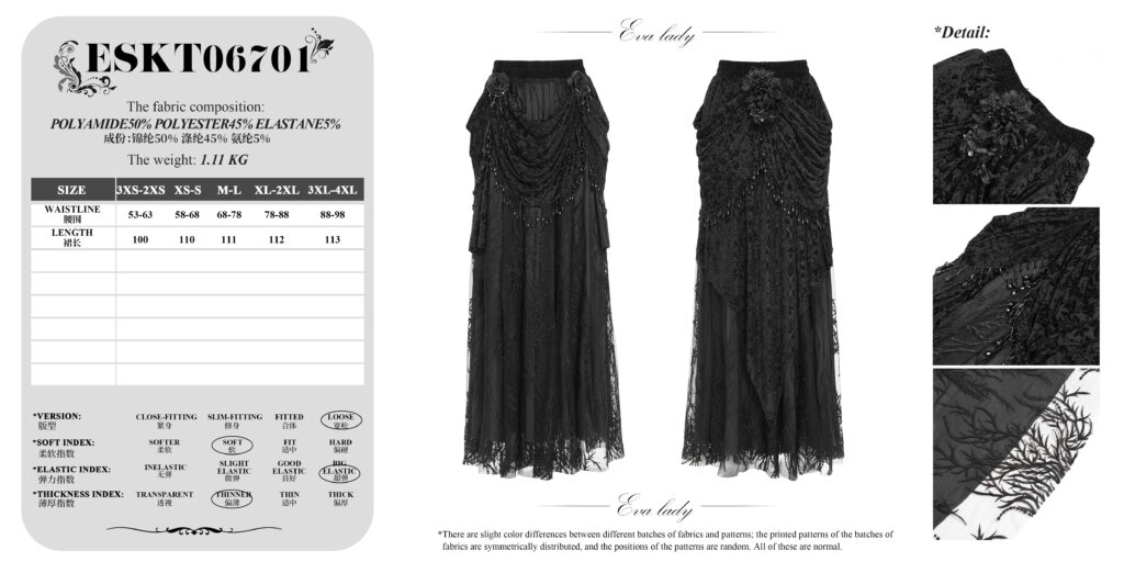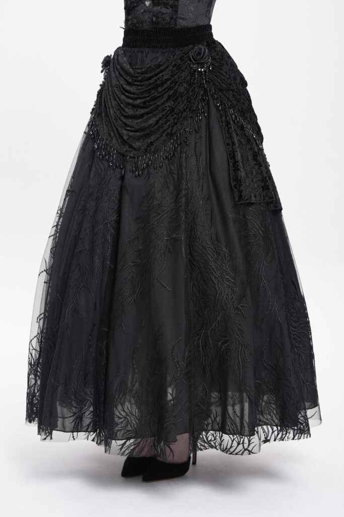 ESKT06701 – Ruche black lace maxi skirt
