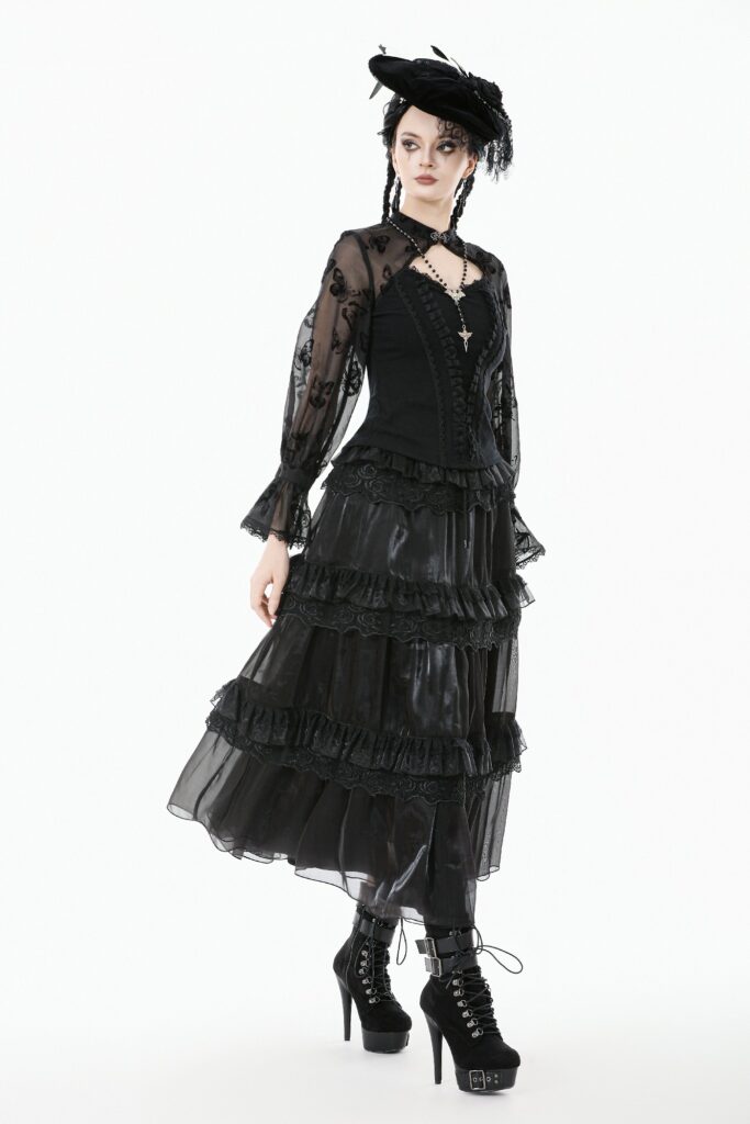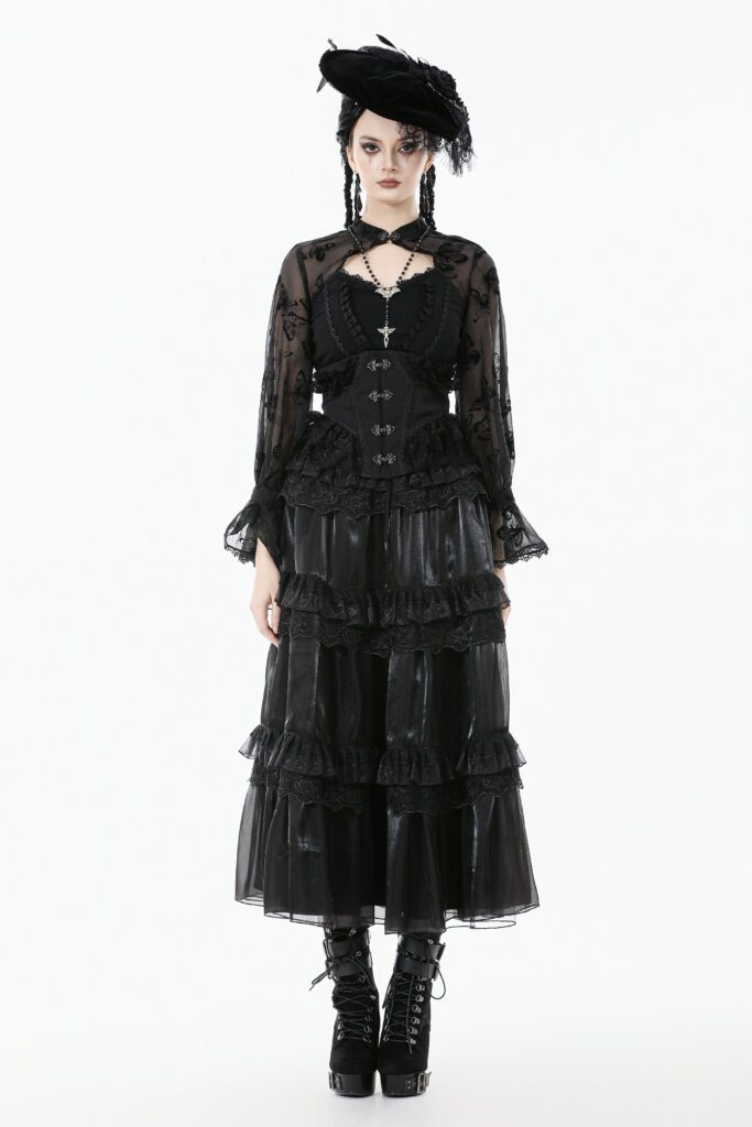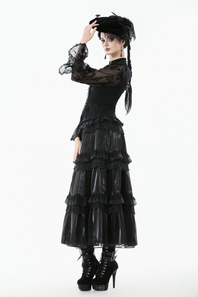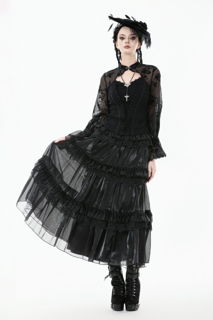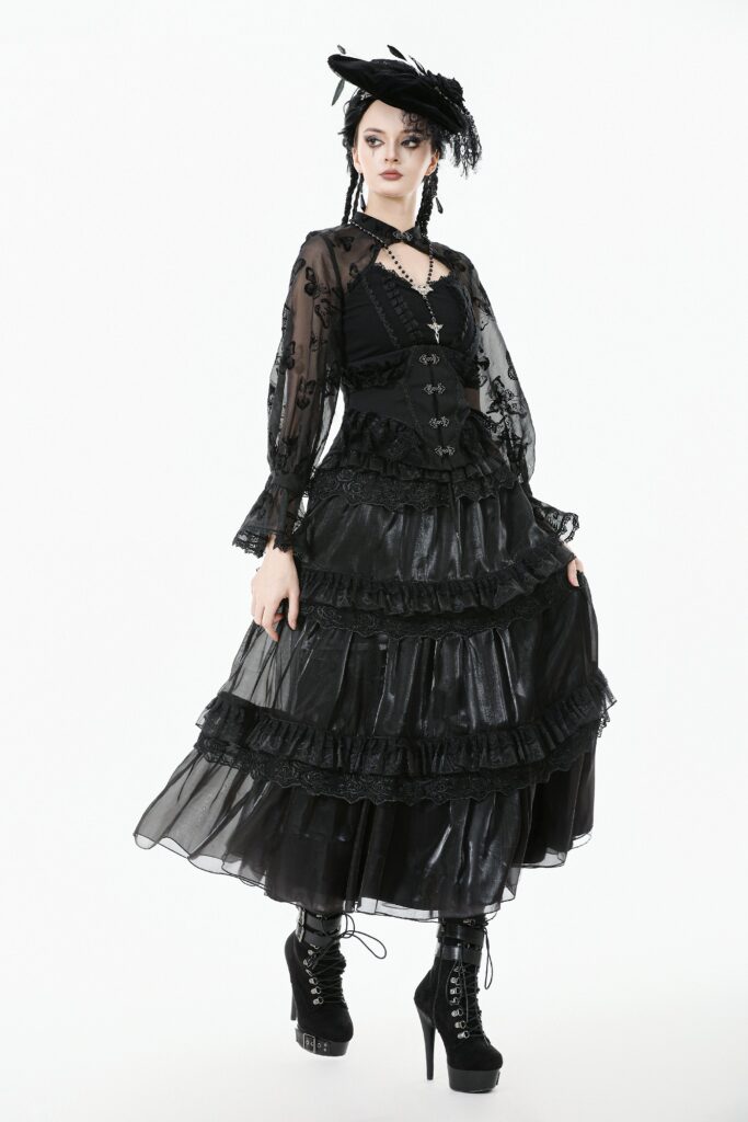 KW392 – Gothic Moonlit Rose Layered Maxi Petticoat Skirt-LXL