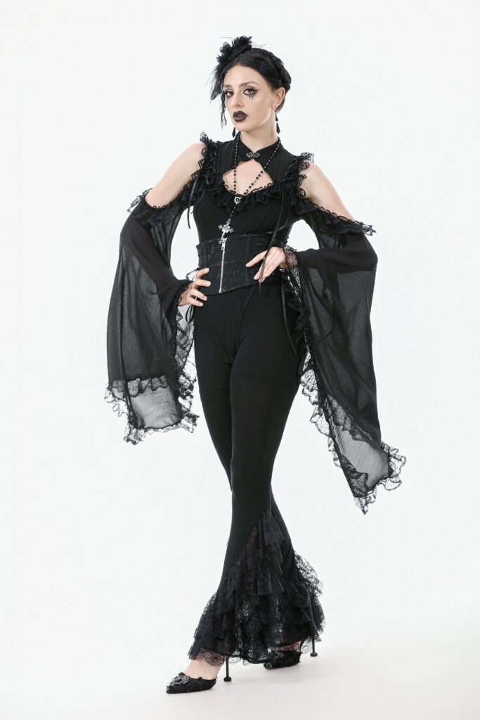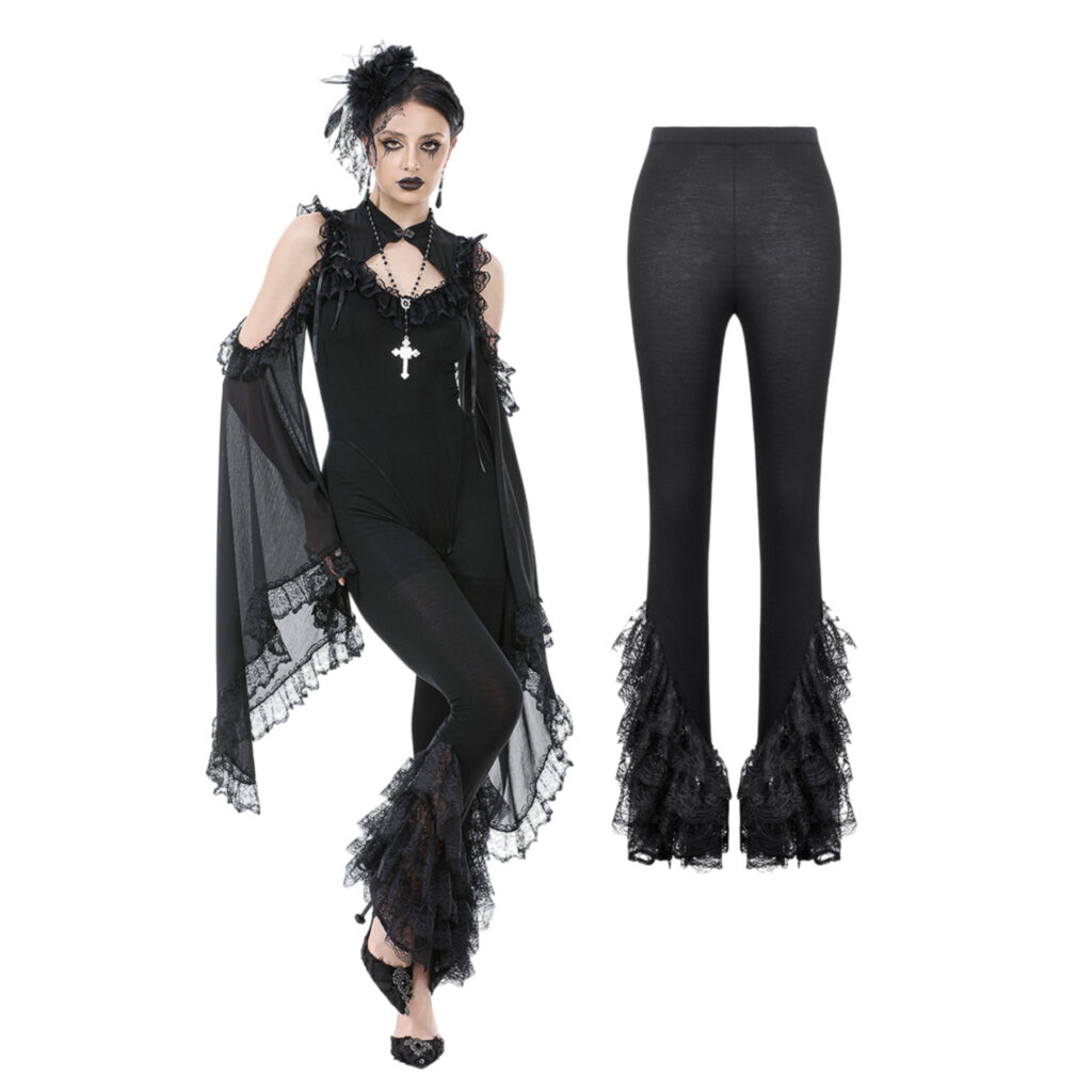 PW139 – Black Multi Layer Lace flared Leggings