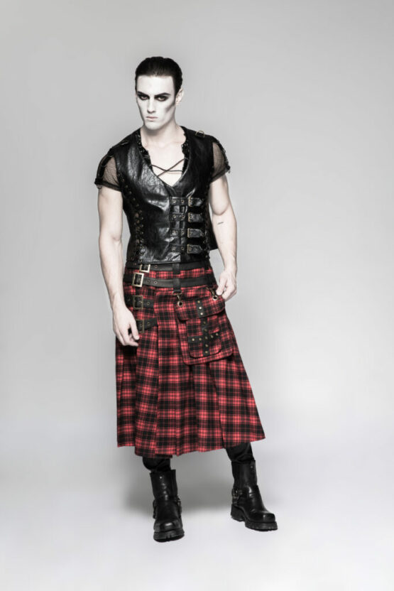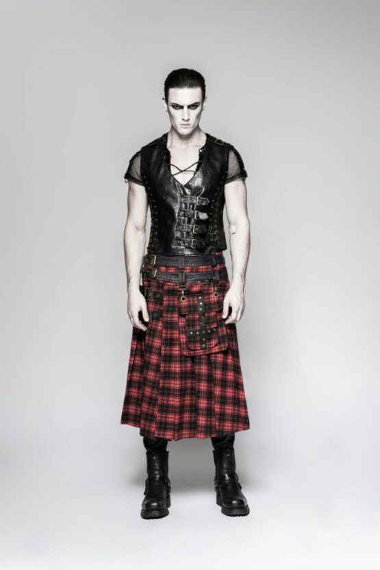 Q325 – Single Piece Heavy Metal PU Pleather Skirt Kilt with bag