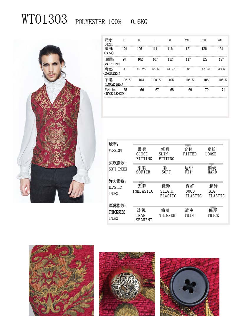 WT1303 – Gothic Red and Gold Damask Male Vest